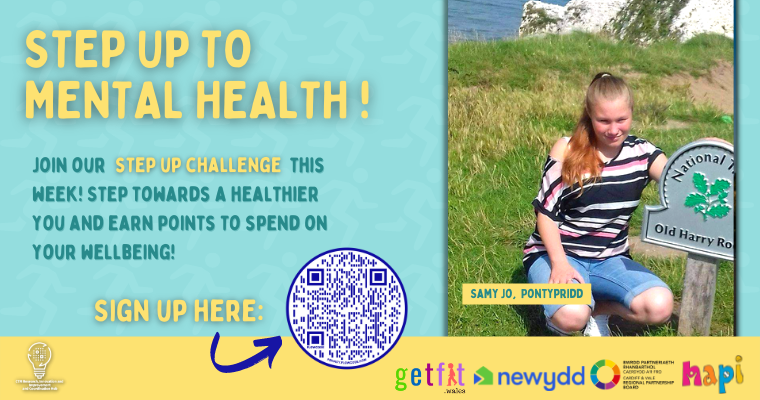 I nodi dechrau Wythnos Iechyd Meddwl Plant, bydd her ‘Step Up’ yn gweld arddegwyr yn gwneud 12.5k o gamau, sy’n gyfwerth â 10km, yn gyfnewid am bwyntiau i’w gwario ar weithgareddau llesiant neu fwyd iach.